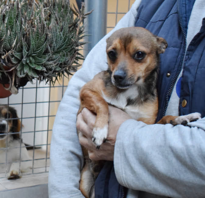Männlich – Mischling (11. Februar 2023), 4,6 kg, 30 cm. Nano ist ein aktiver und sehr fröhlicher kleiner Hund. Ein Mann aus einer Stadt in der Nähe des Tierheims gab ihn ab, weil er sich nicht mehr um ihn kümmern konnte. Im Tierheim verhält er sich sehr gut mit anderen Hunden; er ist fröhlich und aktiv, aber unterwürfig, wenn es im Garten zu Auseinandersetzungen kommt. Er ist sehr lebhaft und verspielt und liebt es, im Garten herumzutoben. Laut seinem Vorbesitzer ist er an die Haltung in der Wohnung gewöhnt. Er ist auch sehr freundlich zu den Freiwilligen und allen Besuchern des Tierheims.